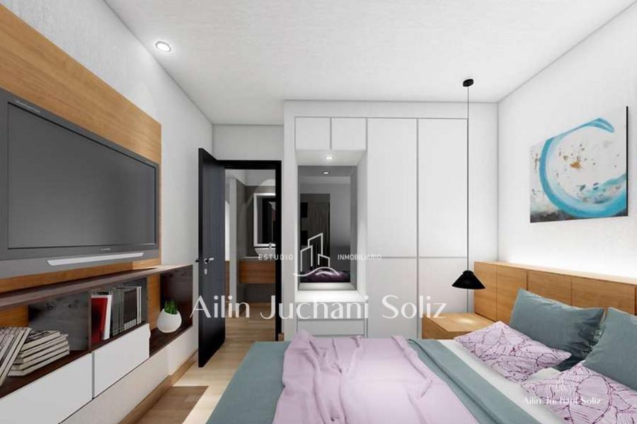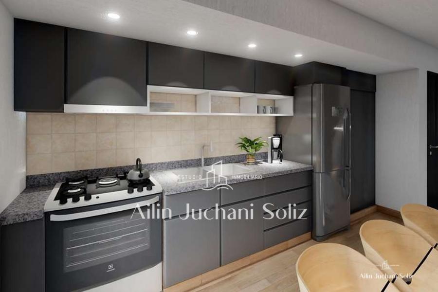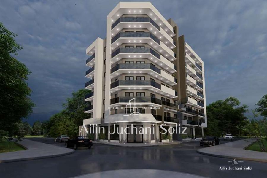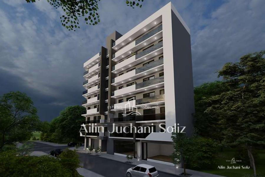 Edificio en construcción que cuenta con 4 locales comerciales en planta baja y 23 departamentos distribuidos en 7 pisos, estos se encuentran organizados por 4 departamentos por piso, siendo así de 1 de tres ambientes y 3 de dos ambientes